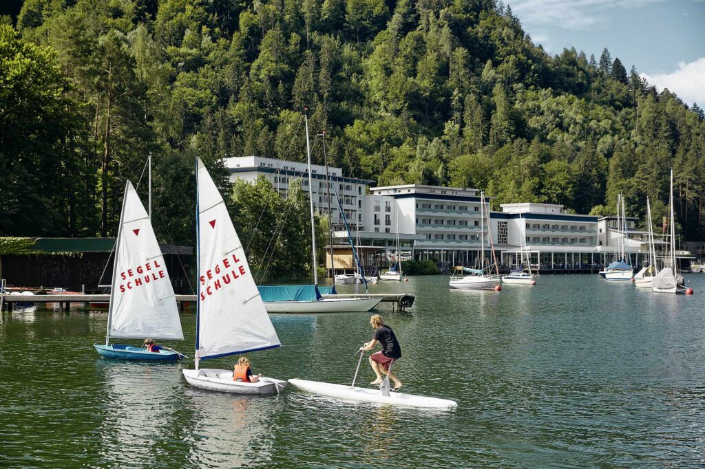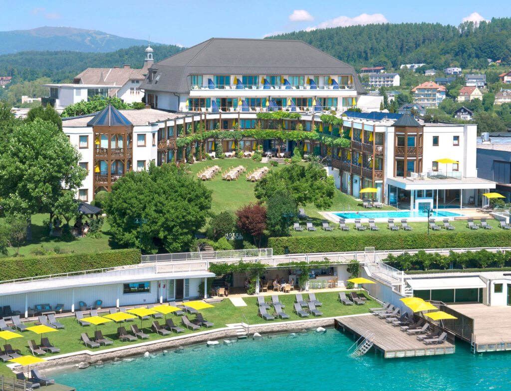 Seehotel Das Vier-Sterne-Superior Resort liegt inmitten eines 30.000 m² großen Parks direkt am Ufer des malerischen Wörthersees und garantiert eine unvergessliche Zeit auf und neben dem Grün. Genießen Sie die idyllische (aber dennoch zentrale) Lage, den hauseigenen Badestrand und Top-Kulinarik und entspannen Sie in den stilvoll eingerichteten Zimmern und Suiten sowie im großzügigen SPA-Bereich mit Panorama-Hallenbad, Whirlpool und Saunalandschaft.
